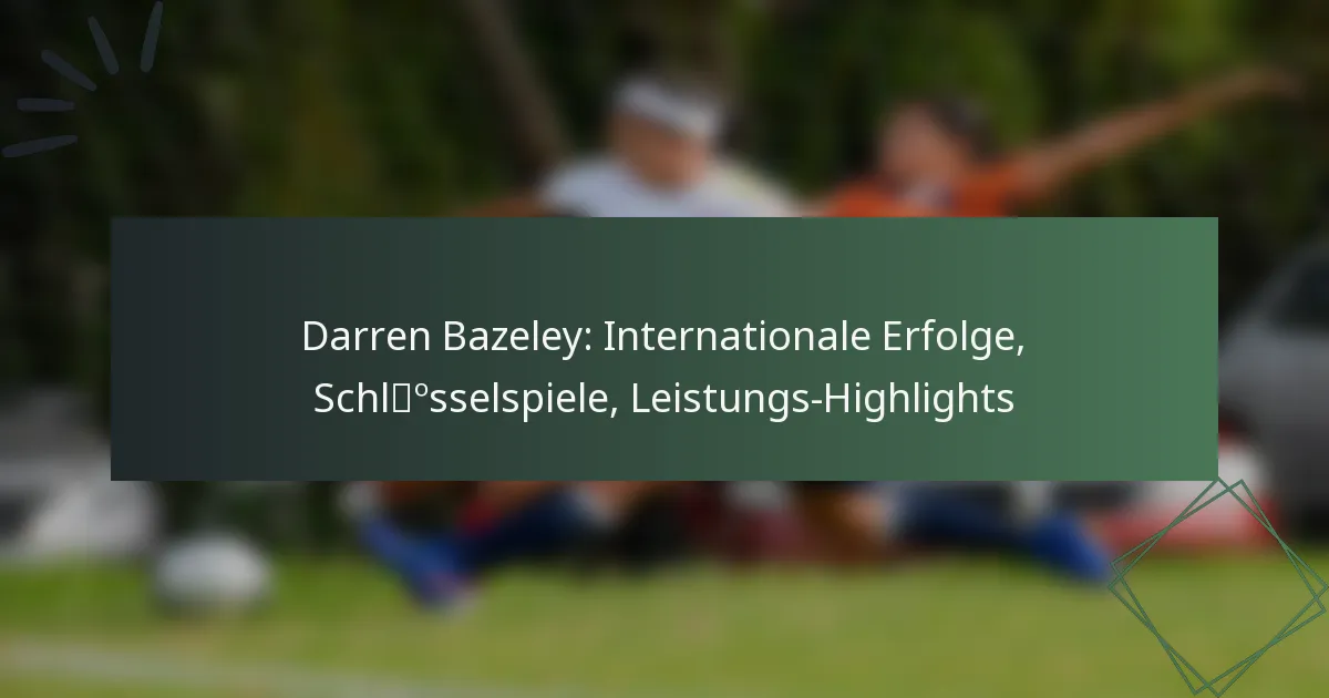 Darren Bazeley: Internationale Erfolge, Schlüsselspiele, Leistungs-Highlights