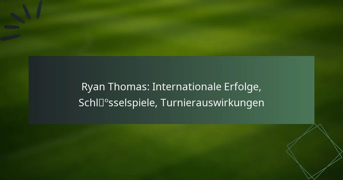 Ryan Thomas: Internationale Erfolge, Schlüsselspiele, Turnierauswirkungen
